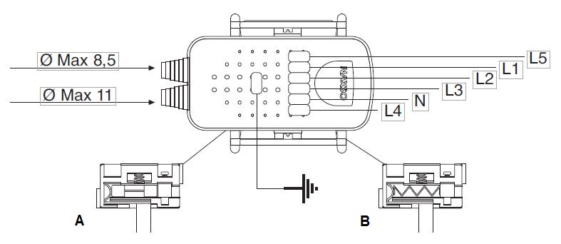 3 - Tap-off assembly to the busbar put on the special safety spring - Safety spring COMPULSORY