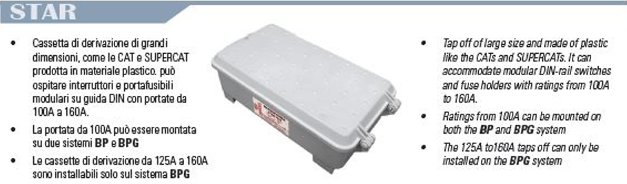 The taps off, with fuse holders, are equipped with three-pole (through neutral) fuse holders.