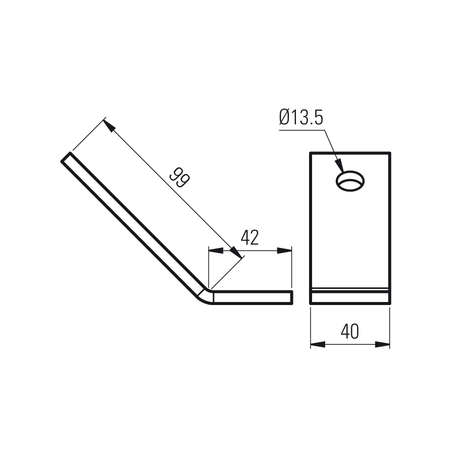 Outside 45° joint plate (2 holes)