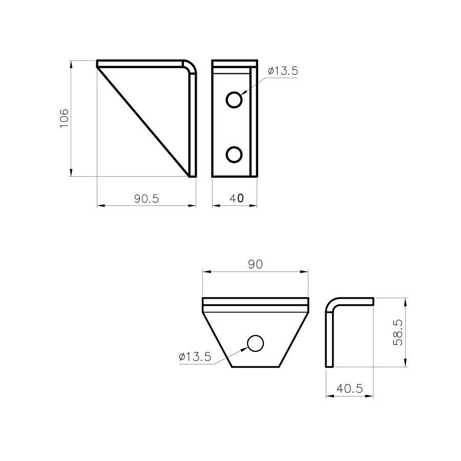 Tridimensional right bracket (4 holes) / Joint Plate (3 holes)