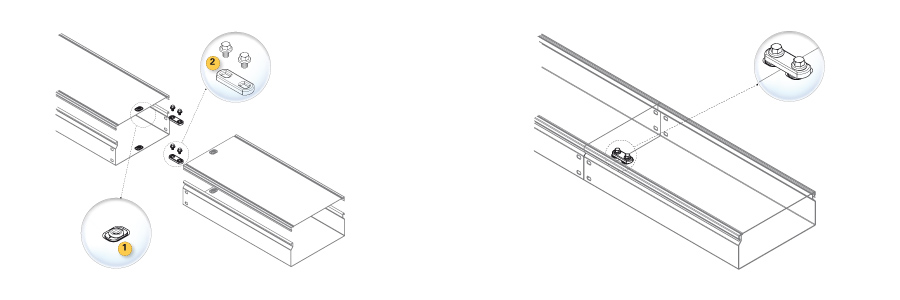 Both covers and trunking have a threaded electro-welding indentation (1) for receiving the earthing devices