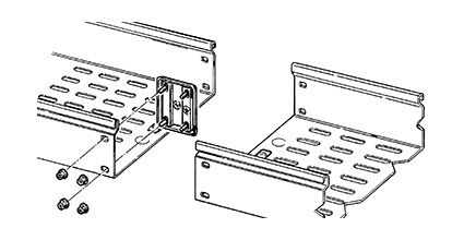 Inside the trunking, the heads of the bolts are recessed and protected by a plate (1) which makes it possible to pull electric cables without fear of damaging them.