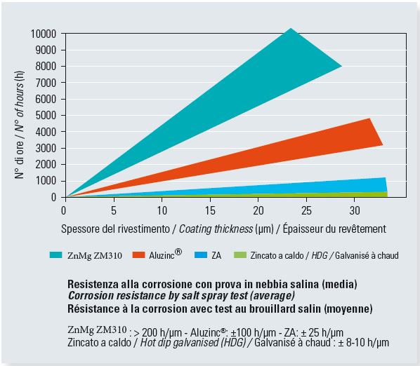 - migliore resistenza alla corrosione, fino a 10 volte superiore ad ogni altro acciaio zincato;