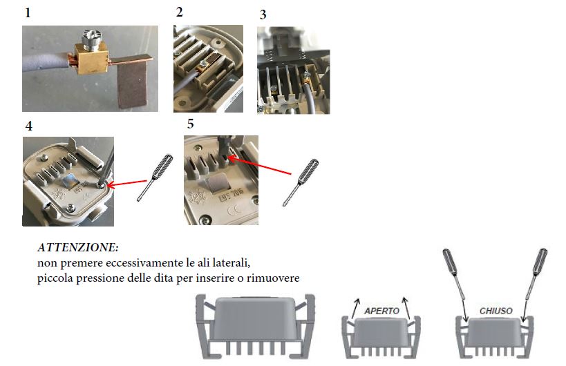 1 - 2 - CONNETTERE I CAVI AI CONTATTI DI FASE E INSERIRLI NELLA POSIZIONE DESIDERATA.