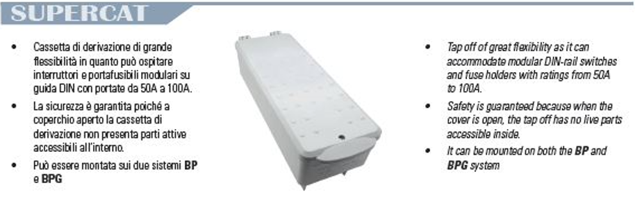 The taps off, with fuse holders, are equipped with three-pole (through neutral) fuse holders.