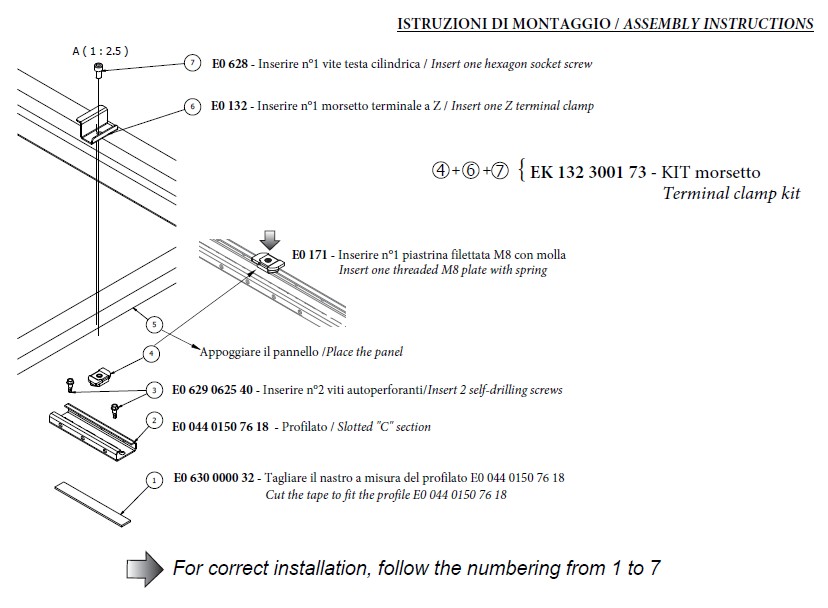 An extremely useful system to lock the “C” section on the top (1) of the fretted metal coverings.