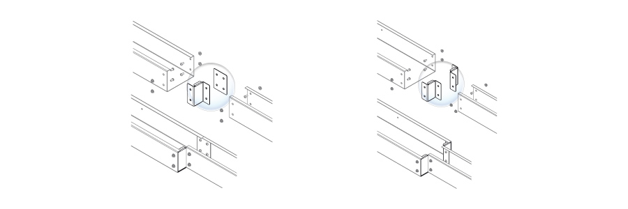 A cheap and simple system for reducing trunking dimensions, both in the centre and at the side.