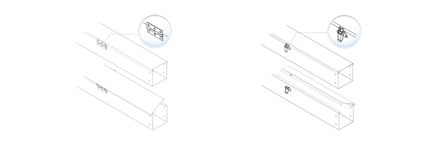 Our “ZM” system is preset for hinged covers. It allows frequent inspections without removing the cover. In alternative to hinges, the system is preset for clamps (code M0 480).