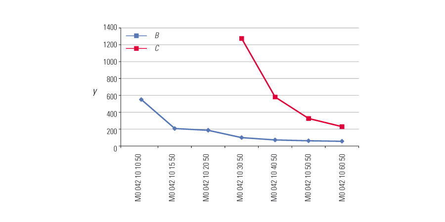 The maximum give (Fmax) under these loads must always be less than 1/200 of the span (L)