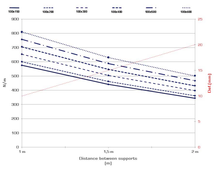 x= Distance between supports (m)