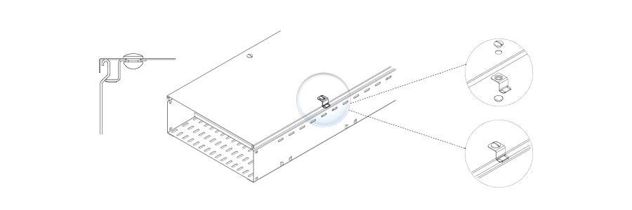 The cover locking clamps are“L” shape tags that clip under the edge of the trunk. On the top of the cover, there is a screw with a slot on the head which, when turned, opens or closes the covers.
